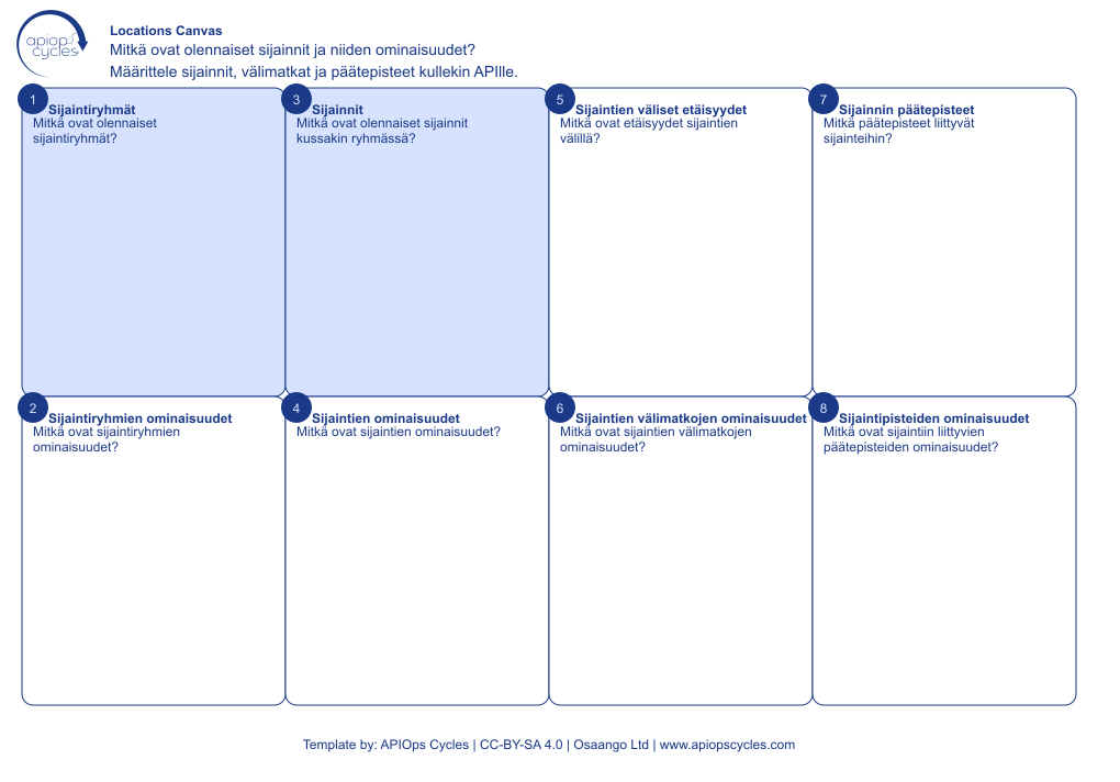 Osio nimeltä “Vaiheet”- API-palveluntarjoajien sijainnit kartalla.